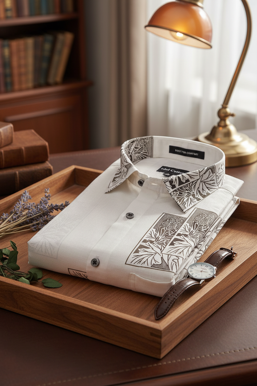 Linen Floral Block Print Cream Base With Dark Brown